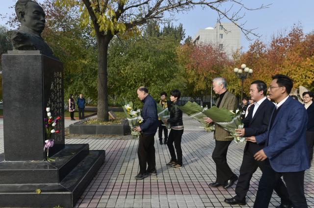 师生一起向校园中成仿吾的塑像敬献鲜花。我校校长刘益春热情会见了成仿吾的家人,高度评价了他对学校发展所作出的历史性贡献,并介绍了学校发展情况。