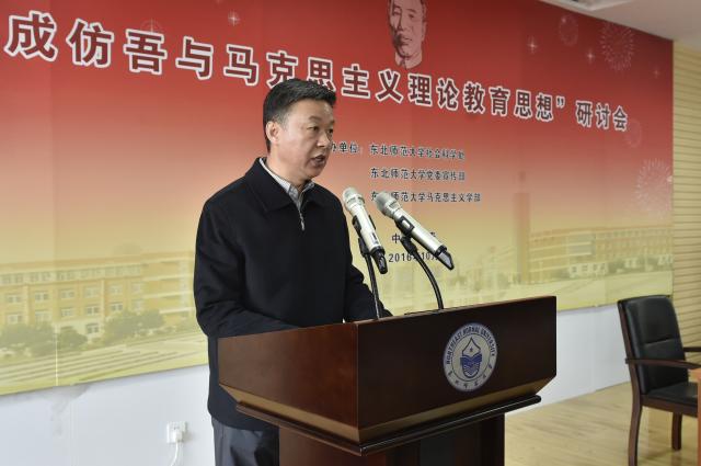 杨晓慧在致辞中指出,东北师大是中国共产党在东北地区创建的第一所综合性大学,具有光荣的革命传统。同时,也形成了重视思想政治工作、重视马克思主义理论教育的传统。成仿吾以政治家的远见卓识和教育家的思想智慧,提出了马克思主义理论教育的一些重要原则,探索了高校思想政治教育的基本经验,奠定了学校马克思主义理论教育的思想传统,也构成了新中国高等学校马克思主义理论教育的底蕴和基础。杨晓慧强调,成仿吾开创的精神传统,已深深积淀并体现在东北师大的办学理念和发展实践中,也成为马克思主义理论教育事业生生不息、发展壮大的丰厚滋养。传统从历史中走来,并向未来敞开。越是在发展的历史性时刻,我们往往更需要从传统中汲取丰厚的思想营养与精神支撑,以确保能够脚踏大地,获得雄浑的精神力量。我们之所以要研讨成仿吾的业绩和思想,就是要追本溯源,深刻认识和领会学校发展的精神传统,寻找新时期学校进一步发展的基因根脉和源头活水;就是要充分汲取成仿吾办学治校的经验智慧,把握新时期学校发展面临的新形势新任务新挑战,努力推进学校“建设世界一流师范大学”的战略目标;就是要增强思想自觉和理论自信,着眼于历史传统的开拓性和引领性,促进马克思主义理论教育传统的创造性转化与创新性发展,不断提升马克思主义理论教育的新境界。杨晓慧表示,东北师大将以深刻的文化自觉和深沉的责任担当,弘扬成仿吾先生以及学校众多前辈学人的精神传统,共同开创学校发展和马克思主义理论教育的新篇章。