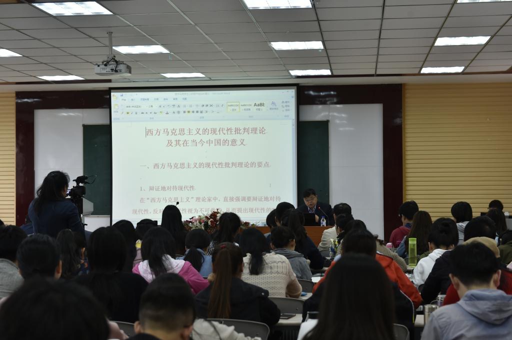 在近3个小时的报告中,陈学明教授围绕西方马克思主义的现代性批判理论的要点、西方马克思主义的现代性批判理论与后现代主义的区别、西方马克思主义的现代性批判理论在当今中国的意义、西方马克思主义的现代性批判理论与马克思主义之间的关系等四个问题,对西方马克思主义现代性批判理论的前沿问题进行了深入浅出地分析与阐释。他以西方马克思主义与后现代主义对现代性问题所产生的分歧为例,强调用马克思主义的辩证方法研究现代性问题的意义和价值,阐述了西方马克思主义现代性批判理论对于中国道路所具有的思想启示。