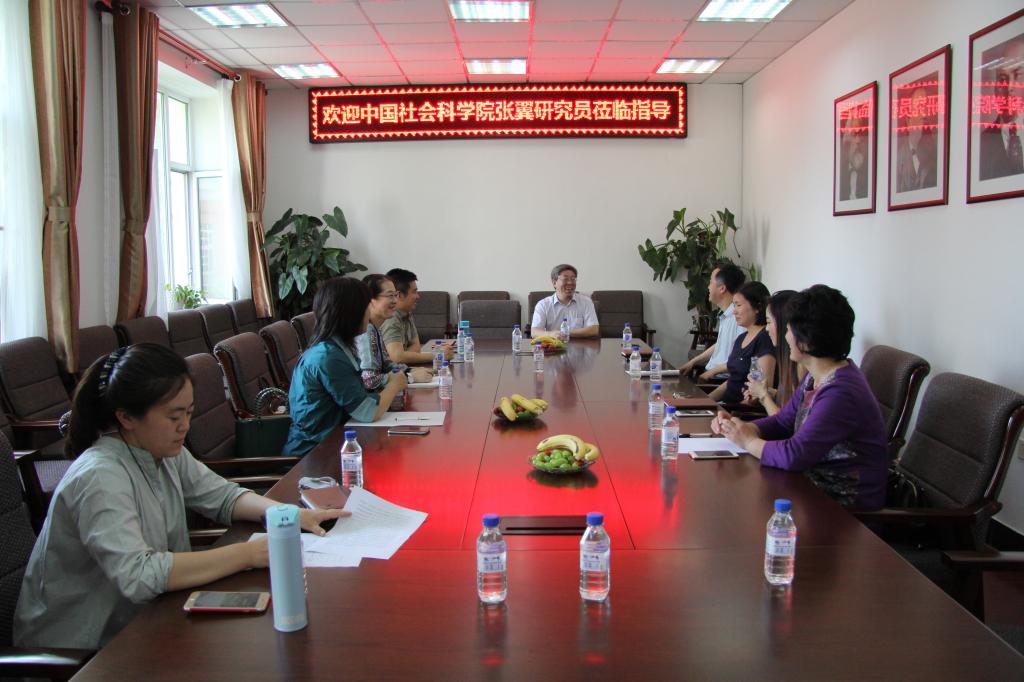 副部长魏书胜参与出席。研讨会上社会学院的教师们踊跃发言、各抒己见。其中,王晶教授对社会研究方法中的质性研究问题向张翼研究员提出了疑问;李鸿教授针对企业社会学方面的若干重点问题对张翼研究员进行了询问;丛晓波教授就当前转型期的社会热点问题向张翼研究员进行咨询;张凤荣教授对大数据背景下社会治理精细化推进问题与张翼研究员进行探讨、闫闯与朱兴涛老师分别对社会治理中社会制度与规范、农村社会组织与社会治理的问题与张翼研究员进行研讨。