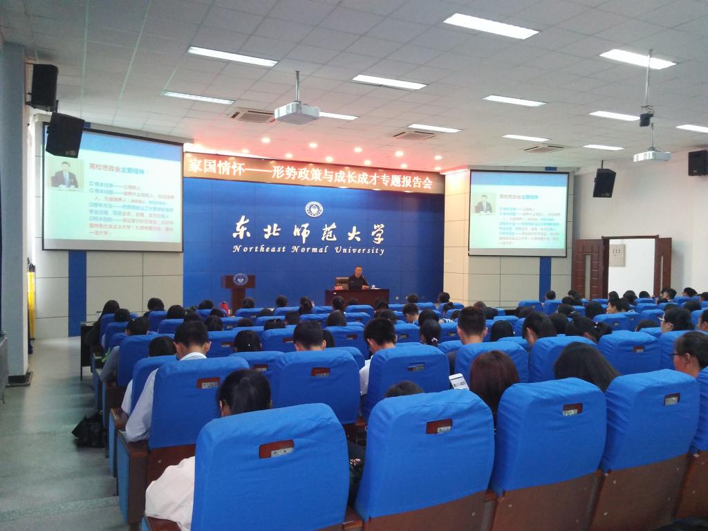 在本部校区和净月校区分别举办了2017年秋季学期首场“家国情怀——形势政策与成长成才”专题报告会。我校党委副书记王延为全校本部校区和净月校区近800名大一学生作了题为“意识形态建设与立德树人使命”的专题报告。