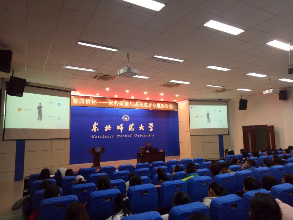 在本部校区的就业指导中心举办了2017年秋季学期第七场“家国情怀——形势政策与成长成才”专题报告会。郭建华副校长为学生作了题为“大数据时代与社会发展”的专题报告。全校近400位师生聆听了本场报告。