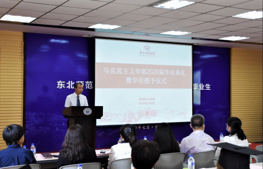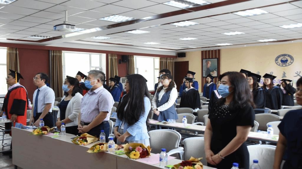 党委书记孟宪生主持。在典礼正式开始前,现场播放了由学校录制的毕业主题MV《远方有你2020》,9:30,毕业典礼在雄壮激昂的国歌声中正式拉开序幕。