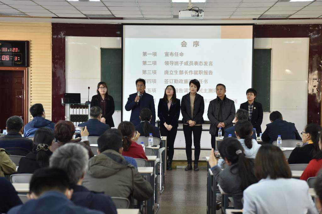 新任领导班子的任命决定。随后,新一届领导班子成员上台进行了表态发言,分别阐述了对于未来工作的展望以及规划。