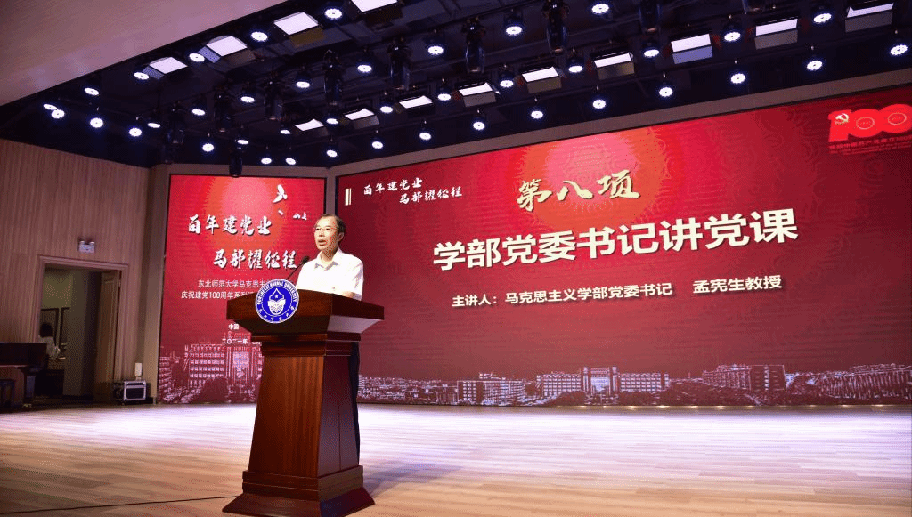 党委书记孟宪生教授就 “新时代坚持和发展什么样的中国特色社会主义和怎样坚持和发展中国特色社会主义”重大时代课题进行了深入浅出的党课讲授,在回顾“七一”重要讲话中提出了对新时代青年的发展和未来的殷切期望,未来属于青年,希望寄予青年。