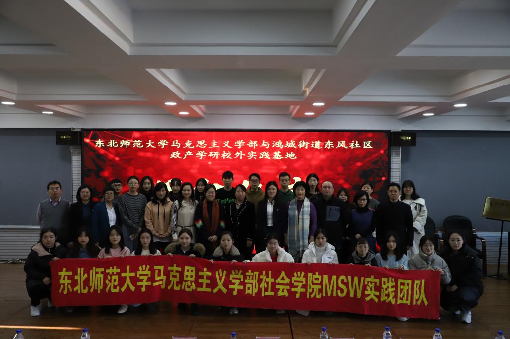 社会学院与南关区鸿城街道东风社区举行了新文科“政产学研”实践教学基地的签约仪式,并与其党支部联合开展了党日活动。活动由东风社区党委副书记夏金磊主持,社会学院师生及鸿城街道、东风社区的负责人参加了此次活动。