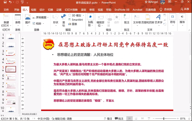 由中国人民大学博士生宣讲团安琪讲师作“当代青年如何回应‘同心战疫’的时代之问”主题宣讲。她结合自身经历,讲述了广大青年人在疫情防控时期坚守初心、勇担使命的故事,带领大家从全民战疫看当代青年的责任,解读了伟大抗疫精神对当代青年的启示。她号召广大青年学生在在思想上政治上行动上要始终同党中央保持高度一致,按照党和人民的期望在疫情防控的具体工作中不断改进思想,不断夯实科学文化知识,不断提高为党工作的能力,同全国人民一道为打赢疫情防控阻击战贡献青春和力量。