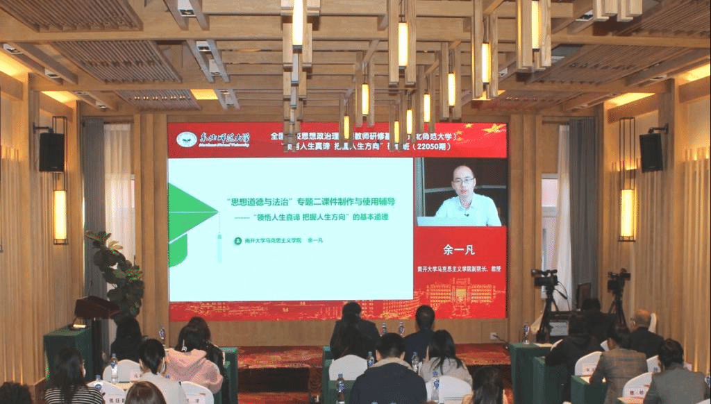 南开大学马克思主义学院副院长余一凡教授以“领悟人生真谛 把握人生方向”为主题进行了专题说课。从理论的底层维度,围绕教材制作的重点以及背后设计的原因进行讲解,为学生更好的掌握理论内涵提供了方法指导。