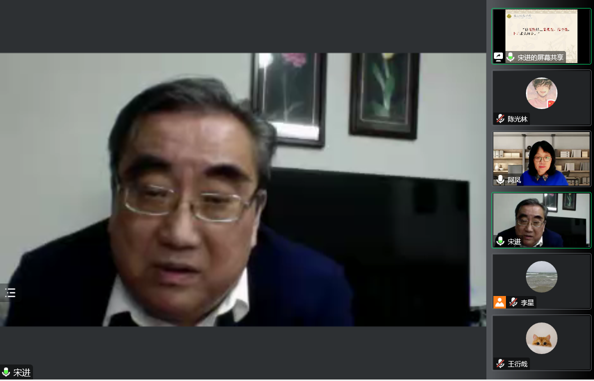其次,关于方法,宋教授以对“历史与逻辑的一致”的解读展开,通过恩格斯的论述,结合目前的教材和学者的研究,阐述了“历史是逻辑的基础,逻辑是历史在理论思维中的再现”,这一马克思主义的基本观点及其运用;关于马克思主义中国化研究的基本方法,他强调在对把马克思主义普遍原理和中国具体实际相结合的研究中,要充分认识到对马克思主义中国化规律的总结,如两个“深度相结合”中和中国历史中国文化的深度相结合;要系统总结中国化马克思主义的价值取向、核心范畴,如创新机制、问题意识、全局观念等;在方法论上他还强调在马克思主义理论研究中多学科的支撑作用,要借鉴运用其他学科的方法,如历史学、政治学、哲学、社会学、文化学、传播学等等,他以国外学者对中国问题研究的视角和具体的博士论文为例展开讲述。