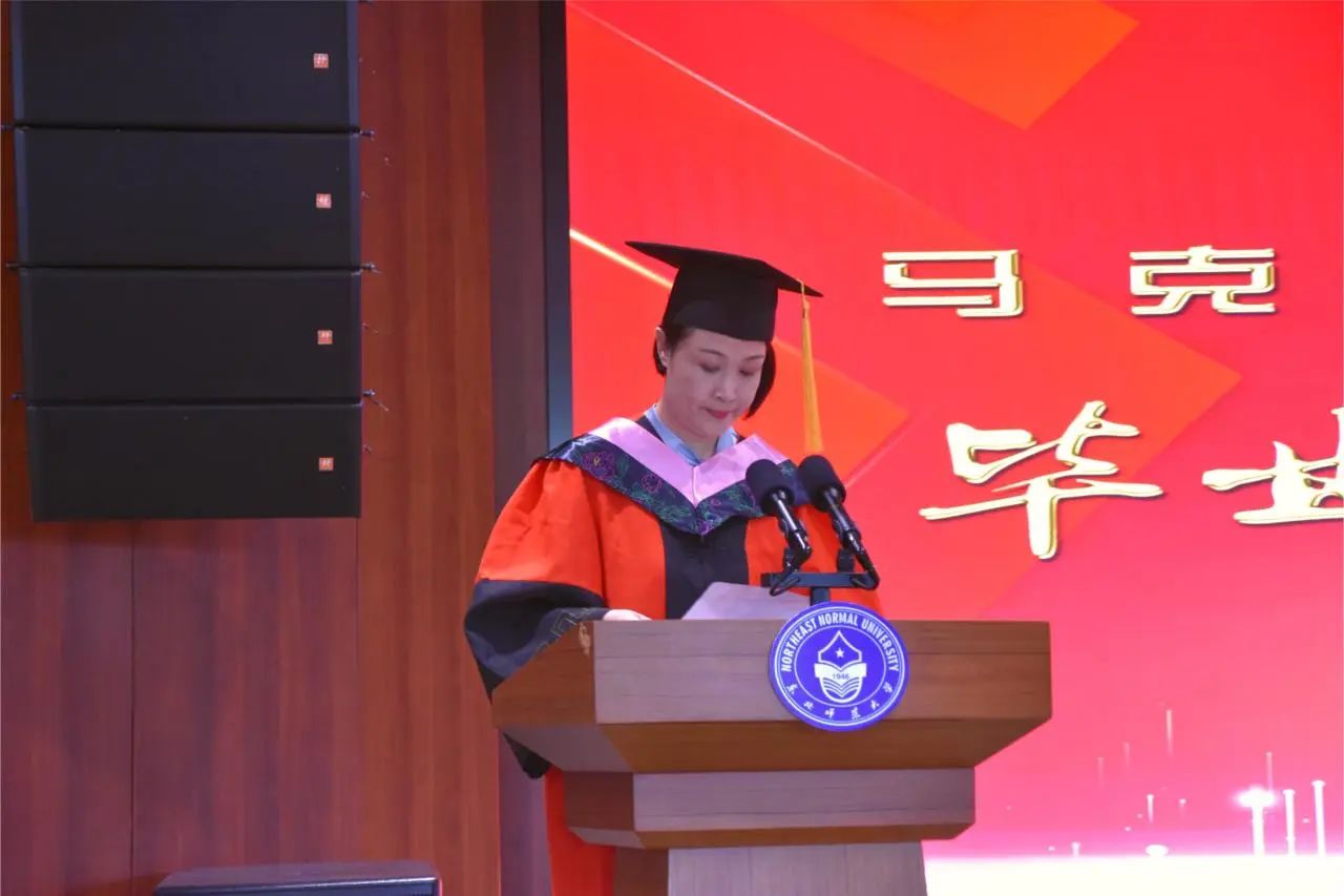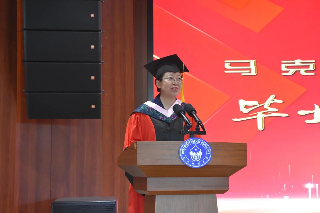全体教师对2023届毕业生及家长表示祝贺。在回忆了美好的校园生活后,康秀云老师对即将踏上新旅程的毕业生们分享了三个建议:坚守信仰,弘扬和践行马克思主义;拥抱奋斗,书写和完成人生答卷;悦纳生活,保持热爱,不断接近梦想。她对毕业生表达了殷切期待并祝愿同学们此去乘风,前程灿烂。
