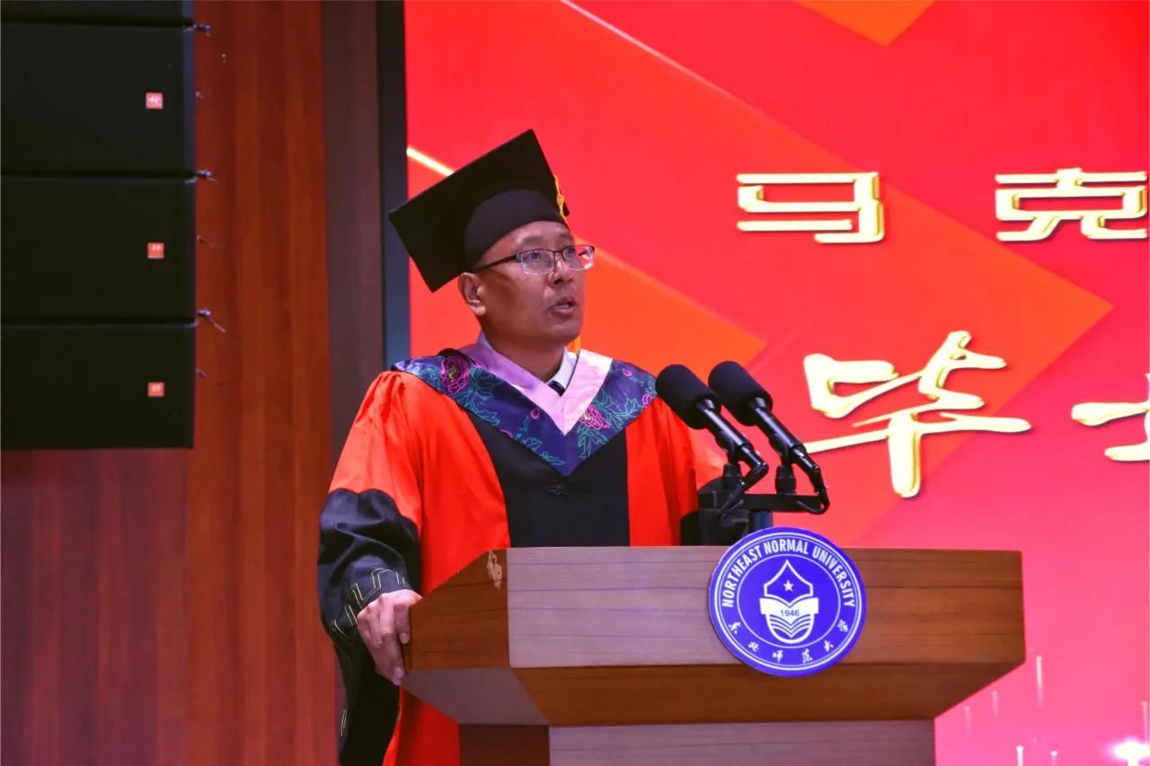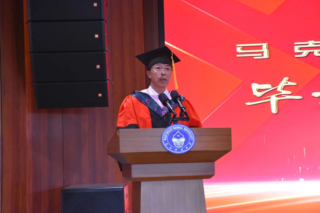 毕业典礼上的致辞》)。首先他向全体毕业生表达了由衷的祝福。他表示大学阶段是人生难得的青春时光,大学生活更为同学们带来了精神上的根源感、归属感和意义感。大学毕业是新的开始,同学们要始终坚持一份人性向善和向上的努力,要心怀德行坚定不移,要反思已有切己体察,要与时代同频共振,获得真正的意义与价值。庞立生部长希望各位同学学会承担更大的责任,不断奔赴自己的热爱并成为更优秀的自己。最后庞立生部长表达了对毕业生的牵挂,并祝福大家一切顺利,前程似锦。