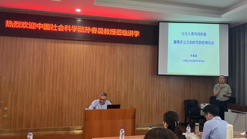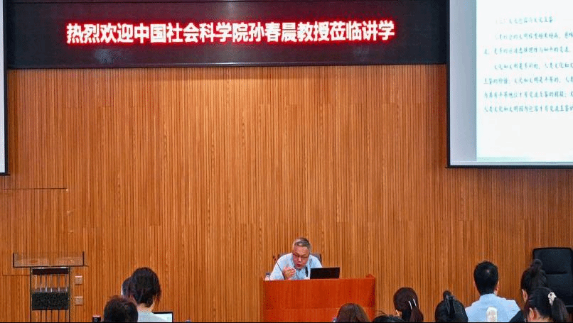 孙春晨教授从全人类共同价值的实践与理论问题出发,旁征博引,深入浅出,引起了同学们的学习兴趣并博得了现场师生的一致好评。