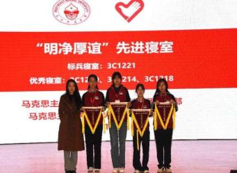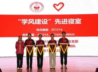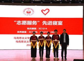 与会嘉宾为年级首批三星志愿者雷鸿秋、张文硕、何振铭、张玉洁、古丽夏提·艾买提授牌,为志愿服务先进寝室三舍C1214、三舍C1608、三舍C1215、三舍B218、“学风建设”先进寝室三舍C1214、三舍C1215、三舍C1610、三舍B920、“明净厚谊”先进寝室三舍C1221、三舍C1219、三舍C1214、三舍C1218授予流动红旗。