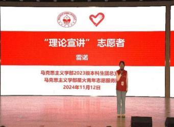 图4:2023级思想政治教育专业本科生雷诺分享“理论宣讲”故事