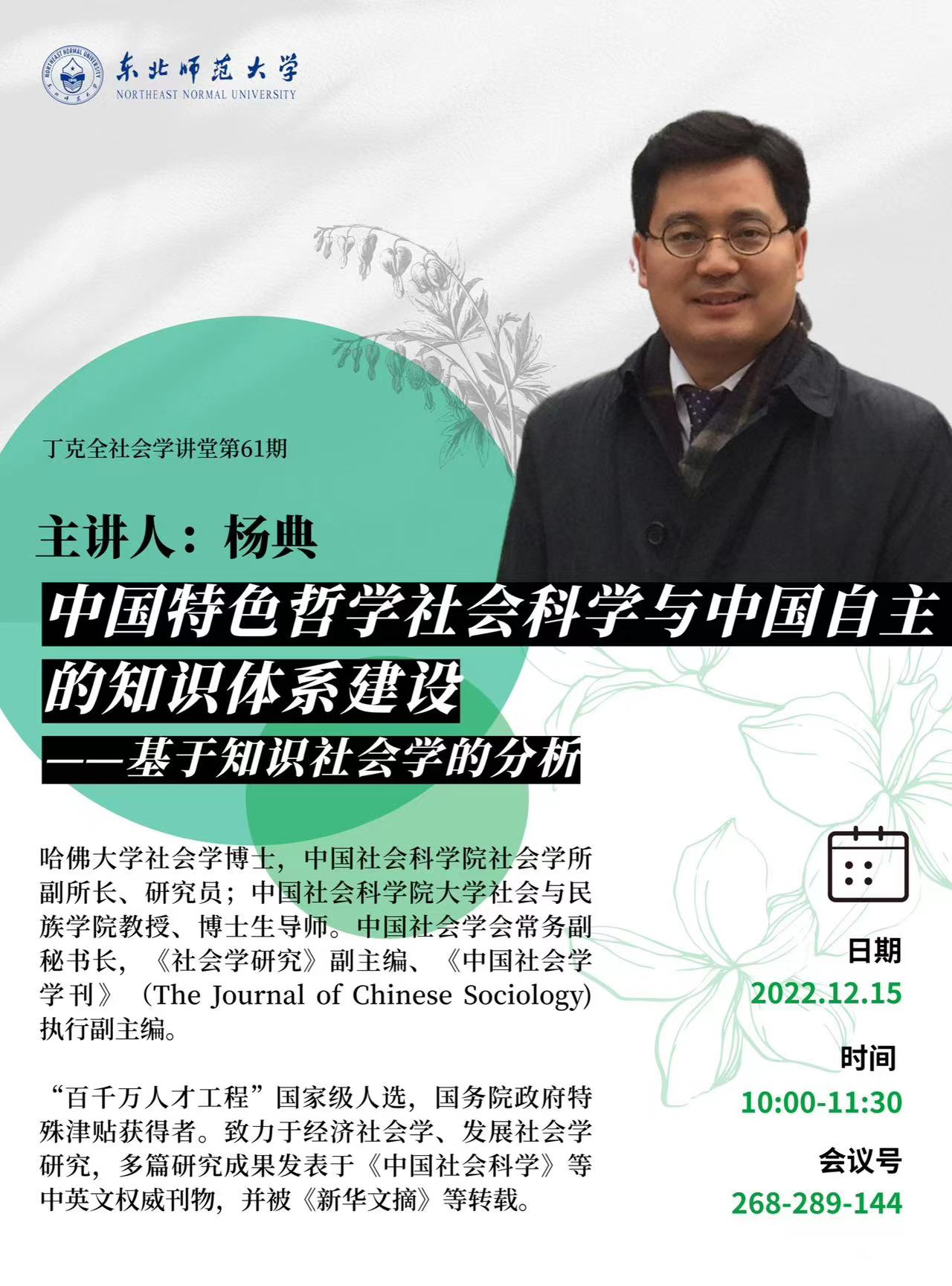 讲座预告:中国特色哲学社会科学与中国自主的知识体系建设-基于知识社会学的分析
