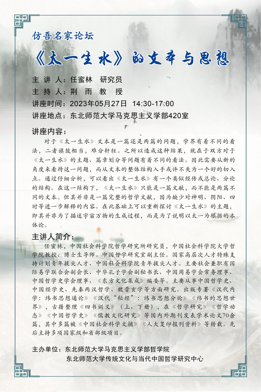 讲座预告:《太一生水》的文本与思想