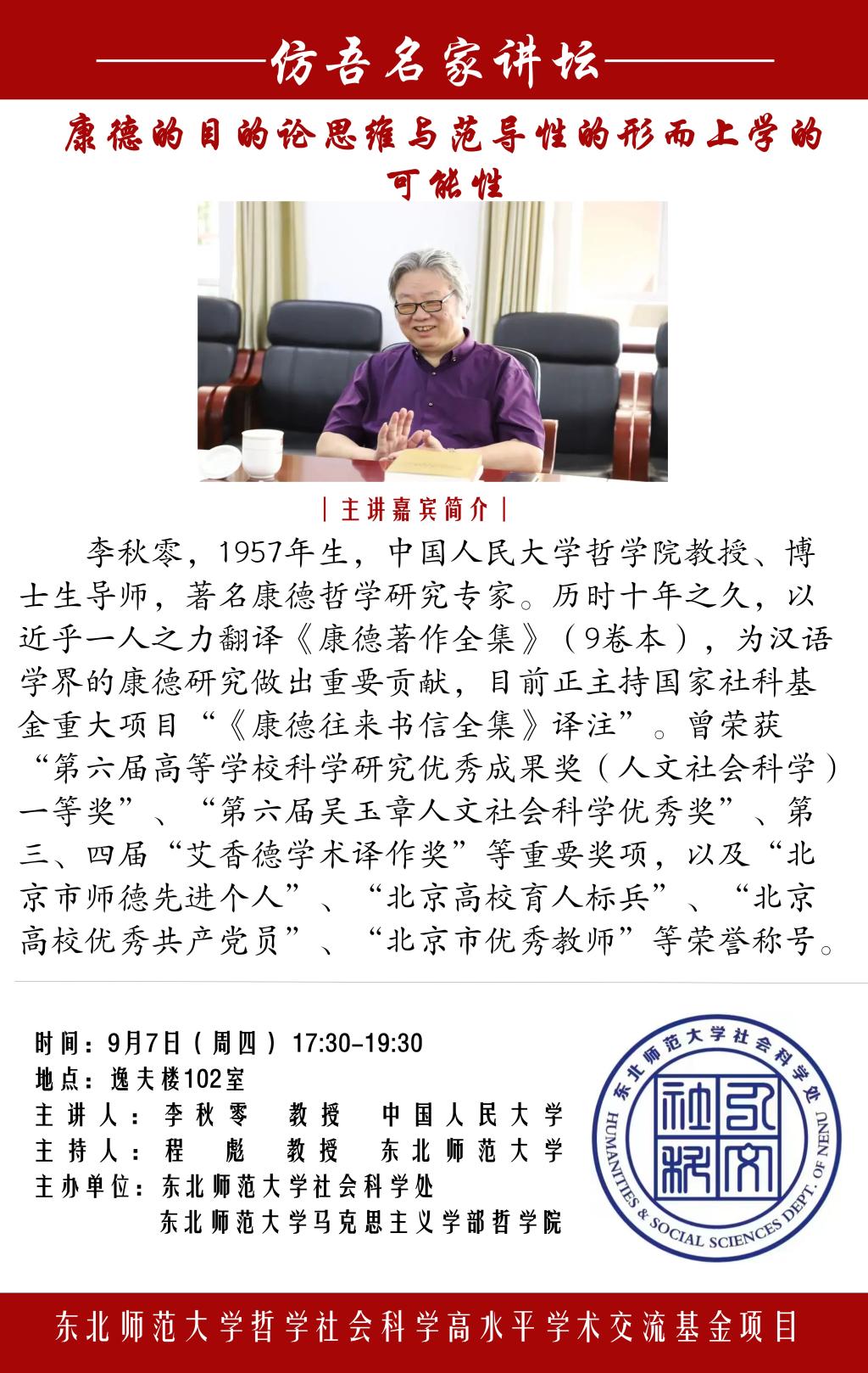 仿吾名家讲坛:康德的目的论思维与范导性的形而上学的可能性