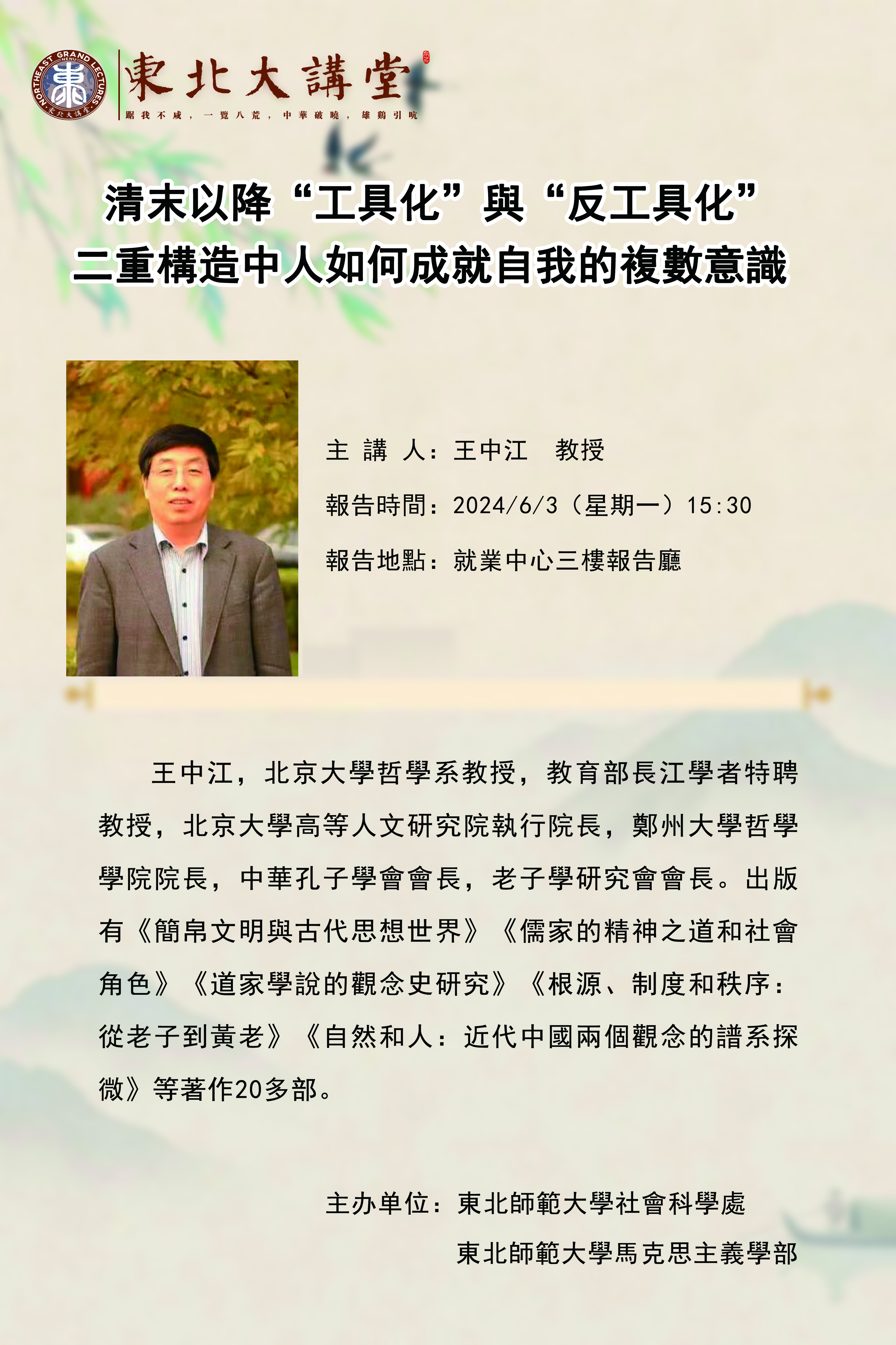 讲座预告:清末以降“工具化”與“反工具化”二重構造中人如何成就自我的複数意識